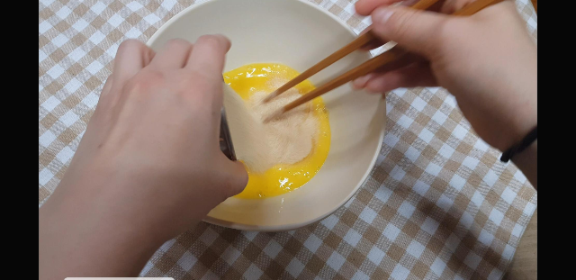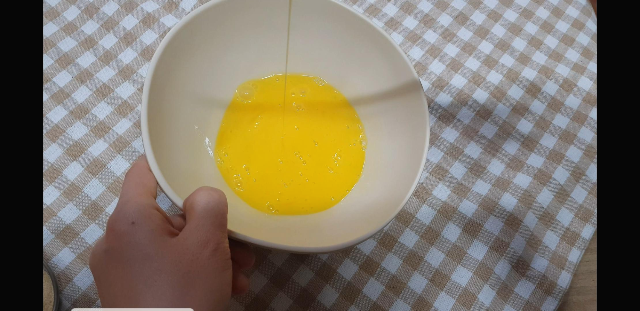 볼에 계란 2개를넣고 소금 한꼬집 정도 넣어서 골고루 풀어준다.