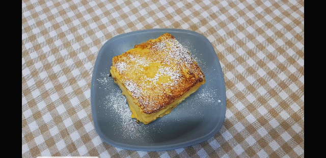 따로따로 식빵이 한몸이되어 초간단 디저트 일본식 프렌치 토스트가 완성되었다.. 우와..신기.... 예쁘라고 슈가 파우더를 뿌려서 한조각 먹었는데 대박..보들보들 입에서 살살녹구요.... 퀄리티 엄청나구요... 이게 식빵이었나 헷갈릴 정도구요..