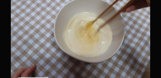 우유 150g을 넣고 마지막으로 잘 저어 준다. 초간단 디저트 일본식 프렌치 토스트 베이스 완성.