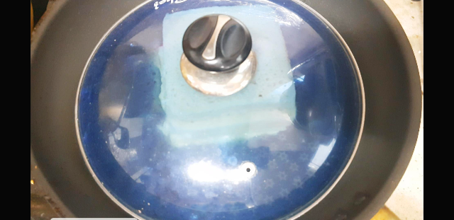 가장 중요한 부분은 가장 약불로 내린 다음에 뚜껑을 덮고 10분정도 구워준다.(난 갑자기 뚜껑 못찾아서 ㅋㅋ다른뚜껑으로 대충올려줌..)