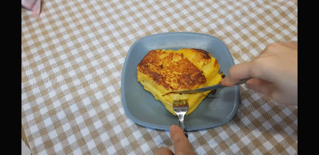 잘라서 보면 식빵3조각이 합체가 된걸 볼 수 있다.ㅋㅋㅋ 대박사건 상당히 고급지다..ㅋㅋㅋ만들어 놓고 이틀정도 까지도 가능하다고 하니 미리 2회용량을 만들어 놓고 하루 하루 먹어도 될듯! 초간단 디저트 일본식 프렌치 토스트 완성