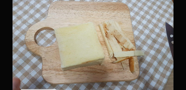 식빵3조각의 테두리를 날린다.(안날리고 그대로 사용해도 무관)
