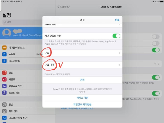 아래쪽으로 내려보면 구독과 구입내역이 보임... 아... 왠지 불안했음.ㅋㅋㅋㅋ 구입내역에 들어가 보니....