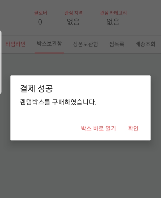 구매가 완료되면 결제성공 창이 뜨고 박스바로열기하면 이게뭐라고 2번의 쫄림이 있어서 바로 열지않고 확인을 눌러 상자2개가 보유되고 있는지 확인부터....
