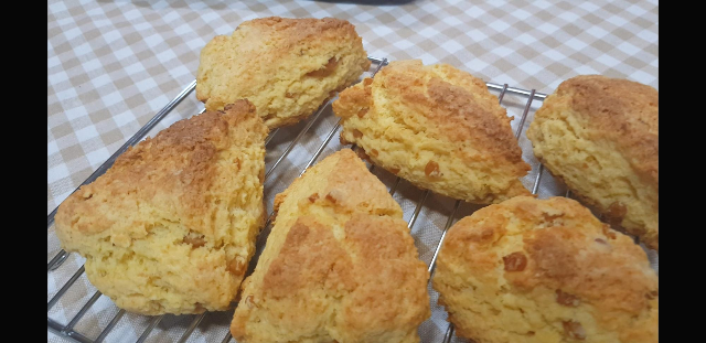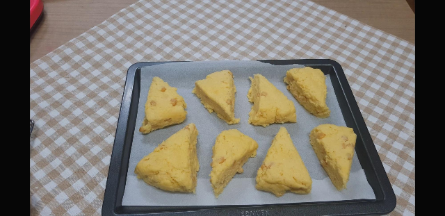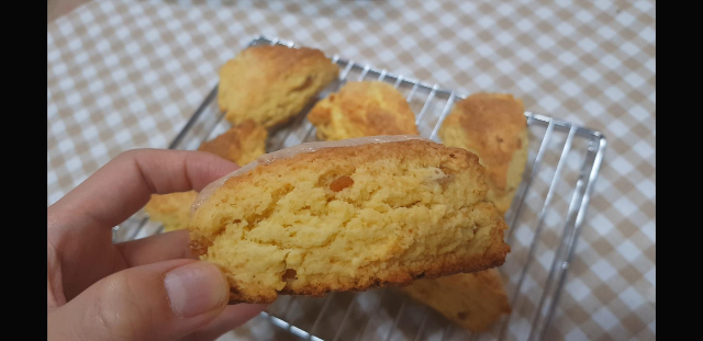 확실히 위에 아무것도 발라주지 않아서 엄청 예쁘진 않은 스콘이지만 뭐 나름 옥수수 스콘이 완성되었고