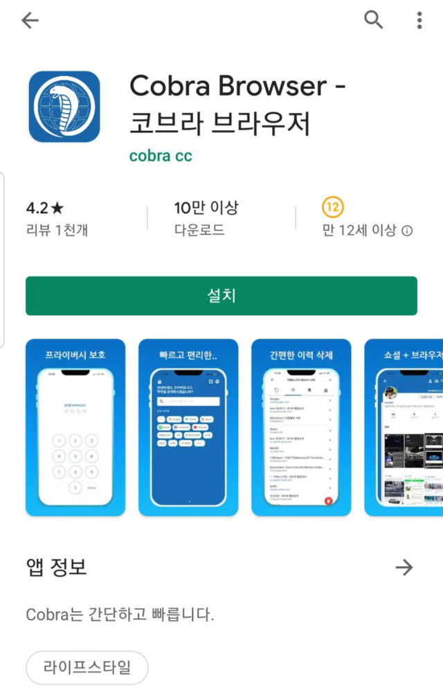 근데 이거는 글쎄... 내가 해보니까 블로그 포스팅의 정보성 링크도 아니고 단순히 스샷한 이미지만 보이는데 그거때문에 코브라 브라우저를 설치할까?ㅋㅋ 이것때문에 코브라브라우저 링크 품앗이 카페도 있다고 하는데 서로 설치된 사람끼리 클릭 해주는거 아니면 별로 효율적이지 못한것 같다. 그냥 나는 웹서핑용으로만 쓰련다..ㅋㅋㅋ 그것만해도 꽤 괜찮은데 뭘.ㅋㅋ
