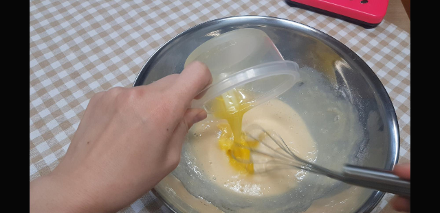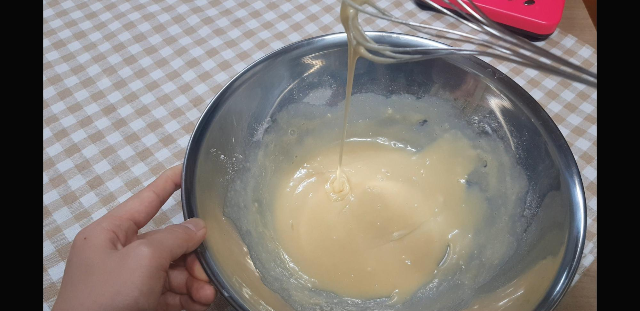 녹인 무염버터 20g을 넣어주고 섞어주는데 어느정도 저어야 하냐면?