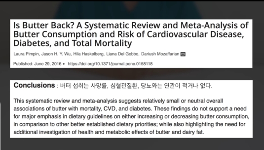 실제로 연구에 따르면 버터를 적당히 먹는것은 심혈관 질환이나 사망률과는 연관이 없었고 오히려 당뇨병의 발생위험을 낮췄다.