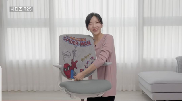 스파이더맨 커버를 씌운 시디즈 T25의자 귀엽노.... 아이들이라뇨 저도 좋아합니다....어른이 올림..