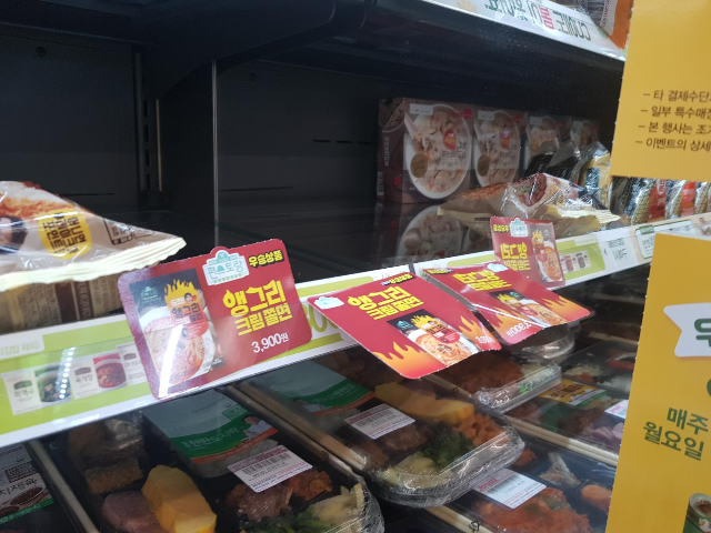 어제 방송에서 꼬꼬마 시식단이 너무 맛있게 먹는 바람에 더 맛있어 보여서 그런가... 열두시 쯤에 일어나서 늘 가던 편의점에 갔는데 솔드아웃... 거기 사실 별로 사람 없는덴데 없다고요...? 이정현 수란덮밥은 있던데... 아.. 포기할까 하다가..