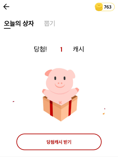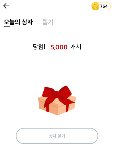 이렇게 상자가 도착해 있다.ㅋㅋ 상자열기를 눌러보면 1 ~ 10000캐시 중에서 랜덤으로 당첨이 되는데 운좋게도 500캐시 당첨됨 ㅋㅋㅋ 야호.. ㅋㅋㅋ 한번 더 해봤는데 2원 당첨..ㅋㅋㅋ