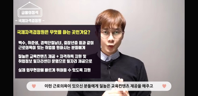 국제자격검정원의 강의는 본원자체 스튜디오를 통해서 제작을 하기 때문에 최신강의들로 구성되어있고 지속적으로 질 좋은 컨텐츠들이 제작되기 때문에 많은 분들에게 자기개발이나 취업에 도움을 주고 있고