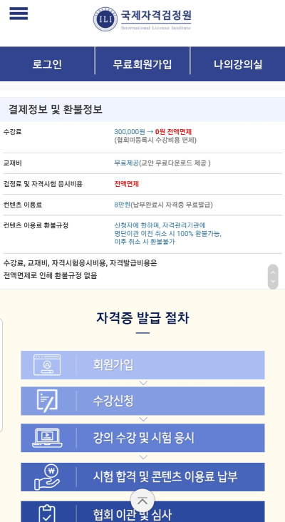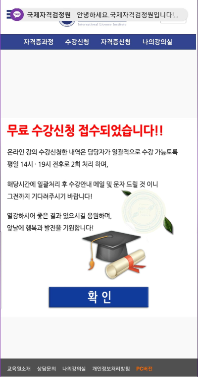 국제자격검정원 홈페이지를 검색해서 나오는 주소로 들어가서 간단한 가입완료후 원하는 과정 3개를 신청하면 끄읕. 그래서 나도 영상을 본 즉시 신청을 해보았다.