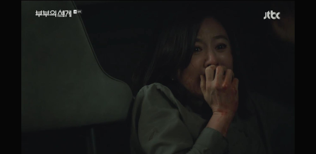 CCTV 쳐 부수시고 들어온 괴한은 지선우에게 폭행을 가하며 내동댕이 쳤고 겁에질려 피투성이가 된 지선우는 겨우겨우 잡게된 와인병을 내려쳐벌임.. 그때 김윤기의 전화가 왔고 사이렌 소리에 괴한은 밖에있던 고예림을 밀치고 도망감. 아...김희애 연기 진짜 대박이야... 내가 같이 소리지름...내가 왜 땀나..