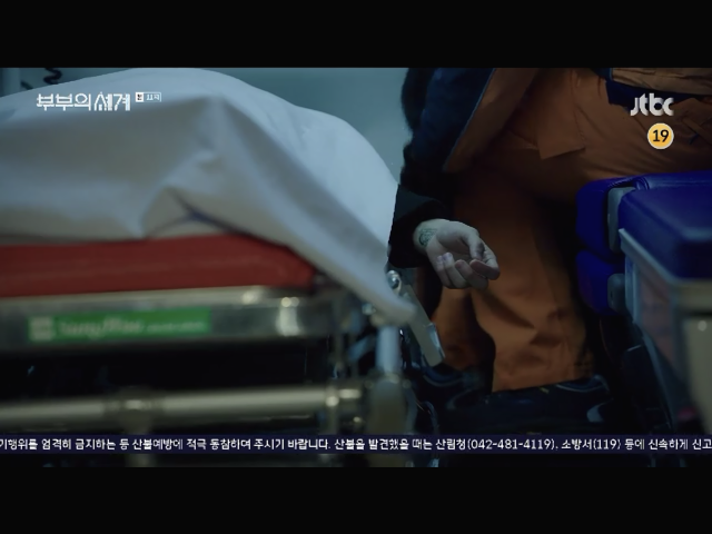 민현서 인줄 알고 충격에 빠진 지선우(김희애) 옆에 나타난 김윤기(이무생)은 떨어진 사람은 남자라며 일단 진정시키고 자리를 뜨자고 견인함. 이정도면 그림자다 그림자.. 캬..