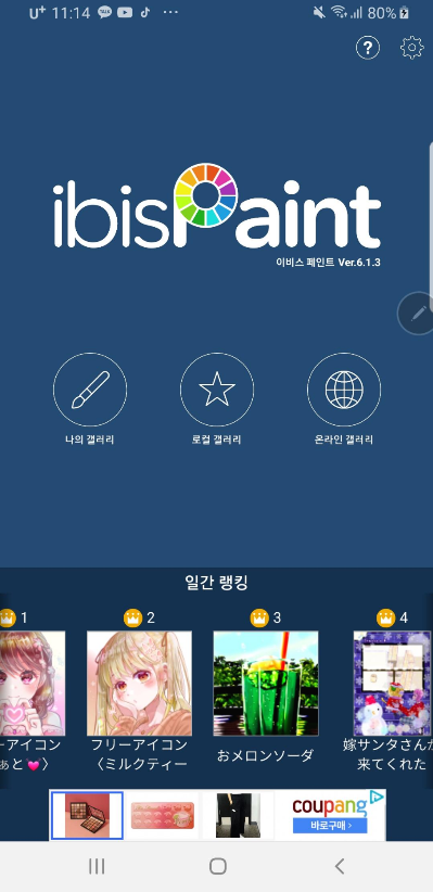 메인화면 당연 무료 버전이라 광고는 어쩔수없다..ㅋ나의 갤러리를 눌러본다.