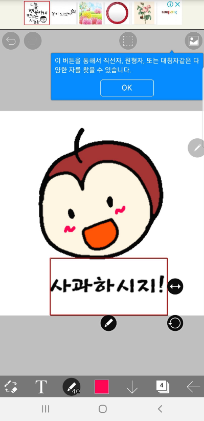 누르면 하단 가운데 네모를 터치해서 색을 초이스할수있고ㅋ대충 선택해본다.ㅋ