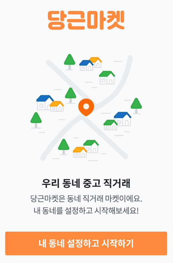 너무나도 당연한 앱 설치 먼저 하게되면 간단하게 핸드폰 번호로 인증을 완료하고 시작하게 되면 관심사 및 프로필 작성과 동네 인증이라는 완료해야 한다. 이 동네 인증은 동네 주민 간 직거래를 위한 서비스 이기 때문에 동네 주민임을 확인하기 위해서 필수로 해줘야 하는것 ! 인증을 마치고 나면