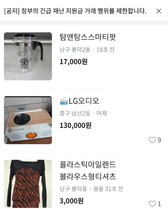이렇게 실시간으로 동네 주변의 중고 물품들이 실시간으로 쭉쭉 올라오고 있는데 정말 상상도 못하는 사소한 물건들도 많아서 살짝 놀랐다. 한편으로 생각하면 이런것 까지 판매를 하다니 싶다가도 이런것도 판매를 할 수가 있구나!! 하는 생각까지 들어서 맘이 편해짐 ㅋㅋㅋㅋㅋ