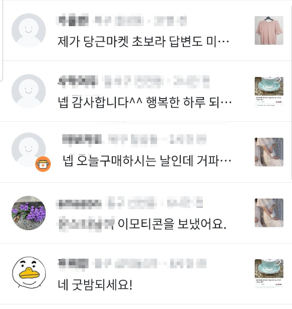 나처럼..올빼미 회원들도 적지 않아서 새벽 5시에도 상품 문의 메세지가 온다는것....ㅋㅋㅋ 그리고 문의 메세지에 대한 답변이 대부분 빠르면 좋은 신뢰감을 줄수 있음.