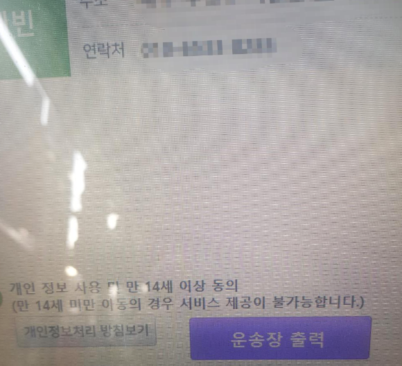 그리고 개인정보사용에 동의체크 하시고 운송장을 출력해서 고객보관용을 제외한 나머지 한장을 택배상자에 예쁘게 붙여주면 끄읕. 보통 택배기사님이 5시20분인가? 암튼 그때 수거하시기 때문에 그 시간 이후에 접수가 되면 다음날 수거하시니 참고하고 받는 사람에게 알려주면됨.