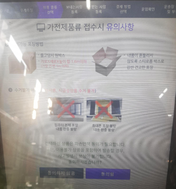 암튼 포장 단디해라는 내용과함께 파손면책 동의를 터치.