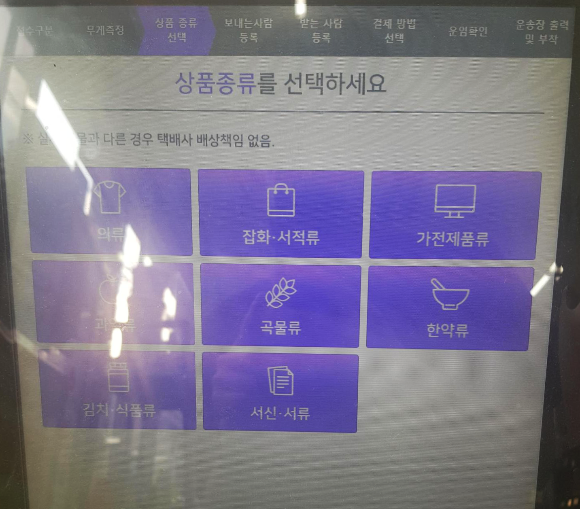 보내는 제품의 종류를 선택하면 된다. 가전제품을 꾸욱.