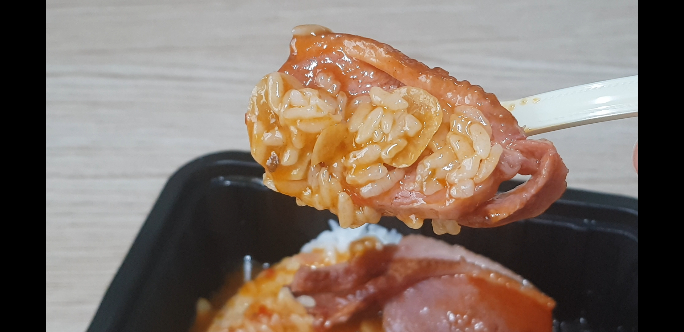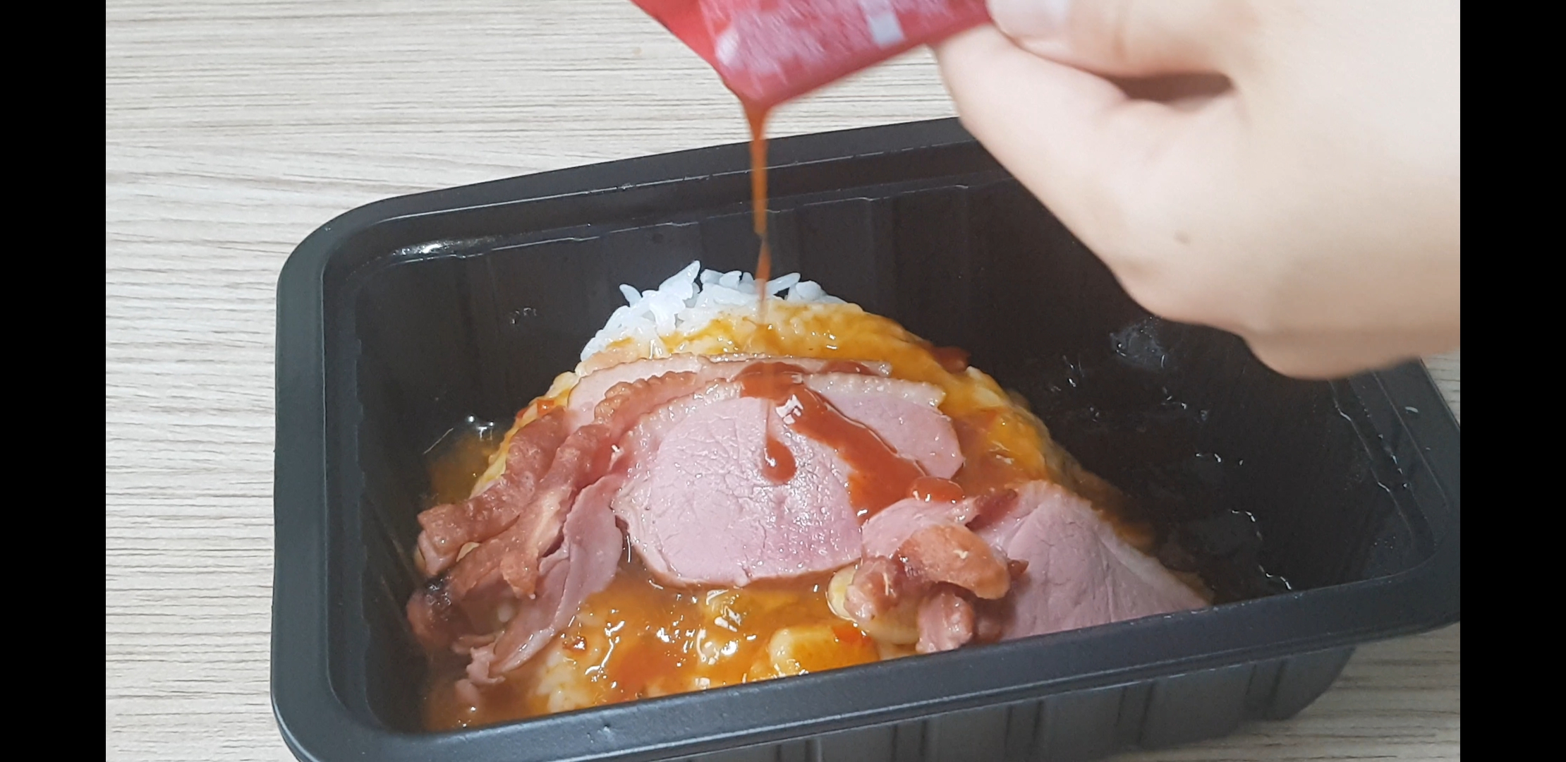 맛있게 먹는방법을 살펴보자. 밥넣고 소스넣고 오리넣고 돌리고 고추장소스 넣고 옴뇸뇸하면 됨.