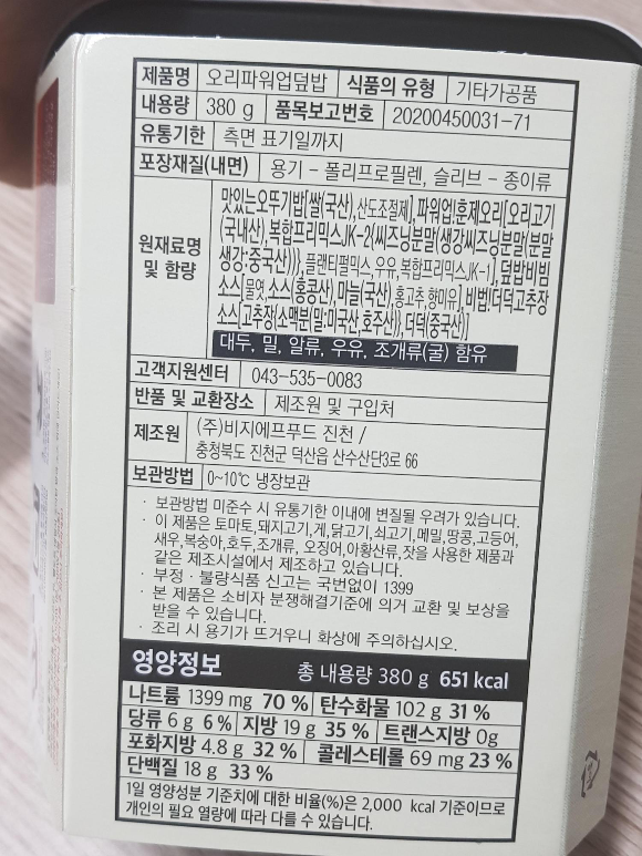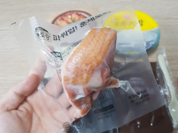 훈제오리 80g의 칼로리는 300... 300...300ㅋㅋㅋㅋ 케이스에 나와있는 설명에 따르면 흰색은 전혀 문제될게 없다. 이말씀.