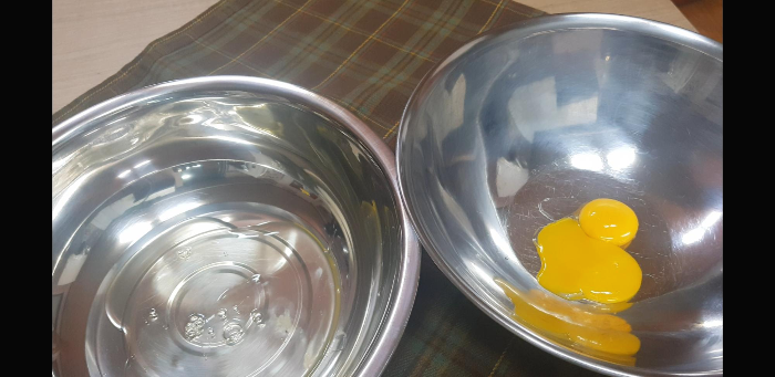 계란2개를 흰자 노른자 분리해준다.