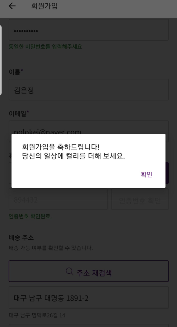 나름 간단한 신규 회원가입을 마치면 회원가입 축하 메세지가 뜨고 ㅋㅋㅋㅋ