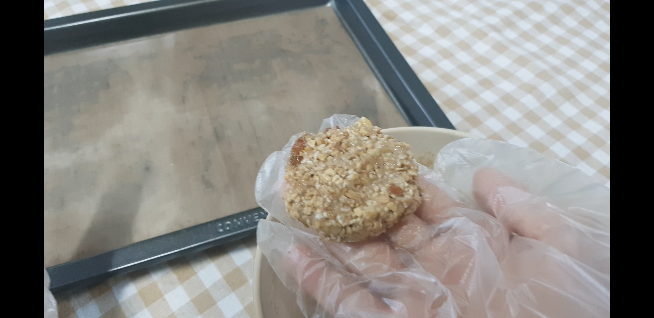 설겆이도 귀찮고.. 그래서 그냥 비닐장갑끼고 대충 포크로 떠올려서 성형을 해줌.