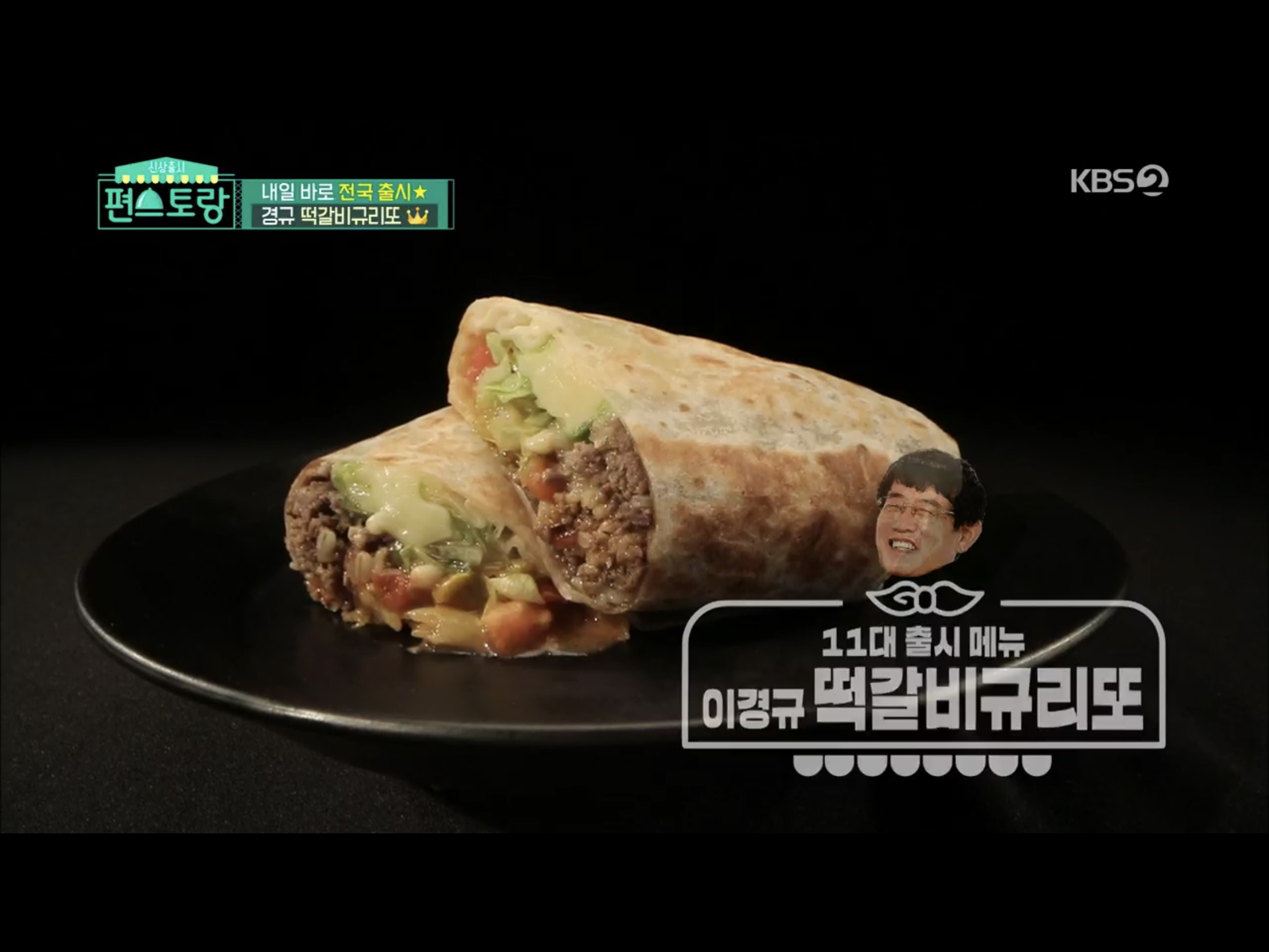 그렇게 해서 편스토랑 11대 출시메뉴는 이경규 떡갈비규리또 편의점에서는 규리또리또로 만날 수 있음.