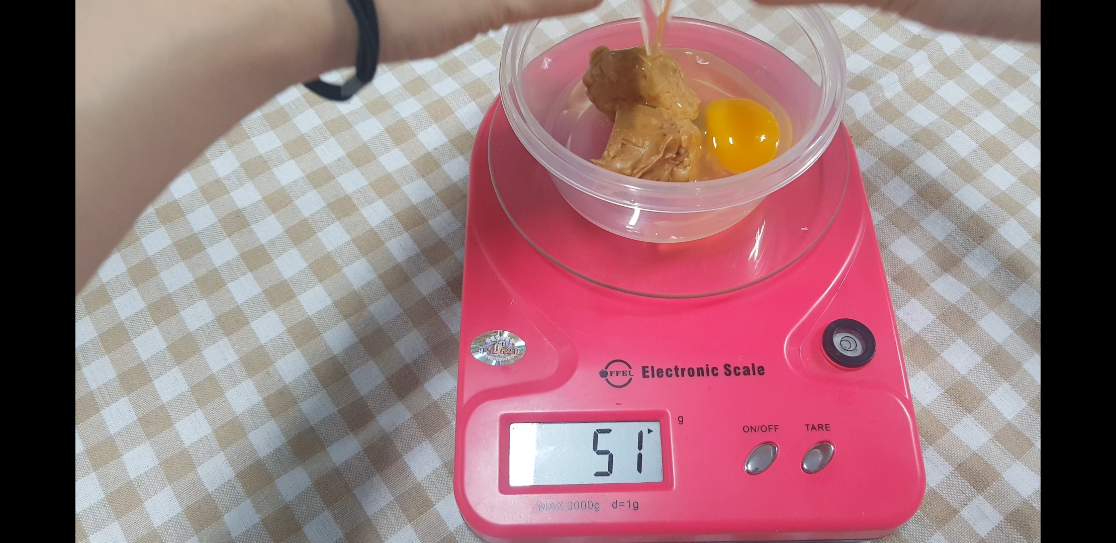 오늘의 주인공 피넛버터와 저울위에 재료들을 섞어줄 용기 준비.
