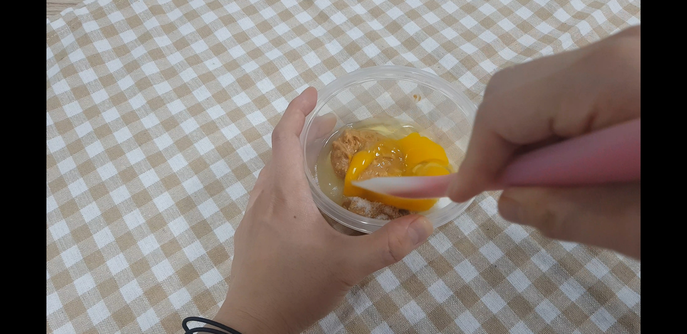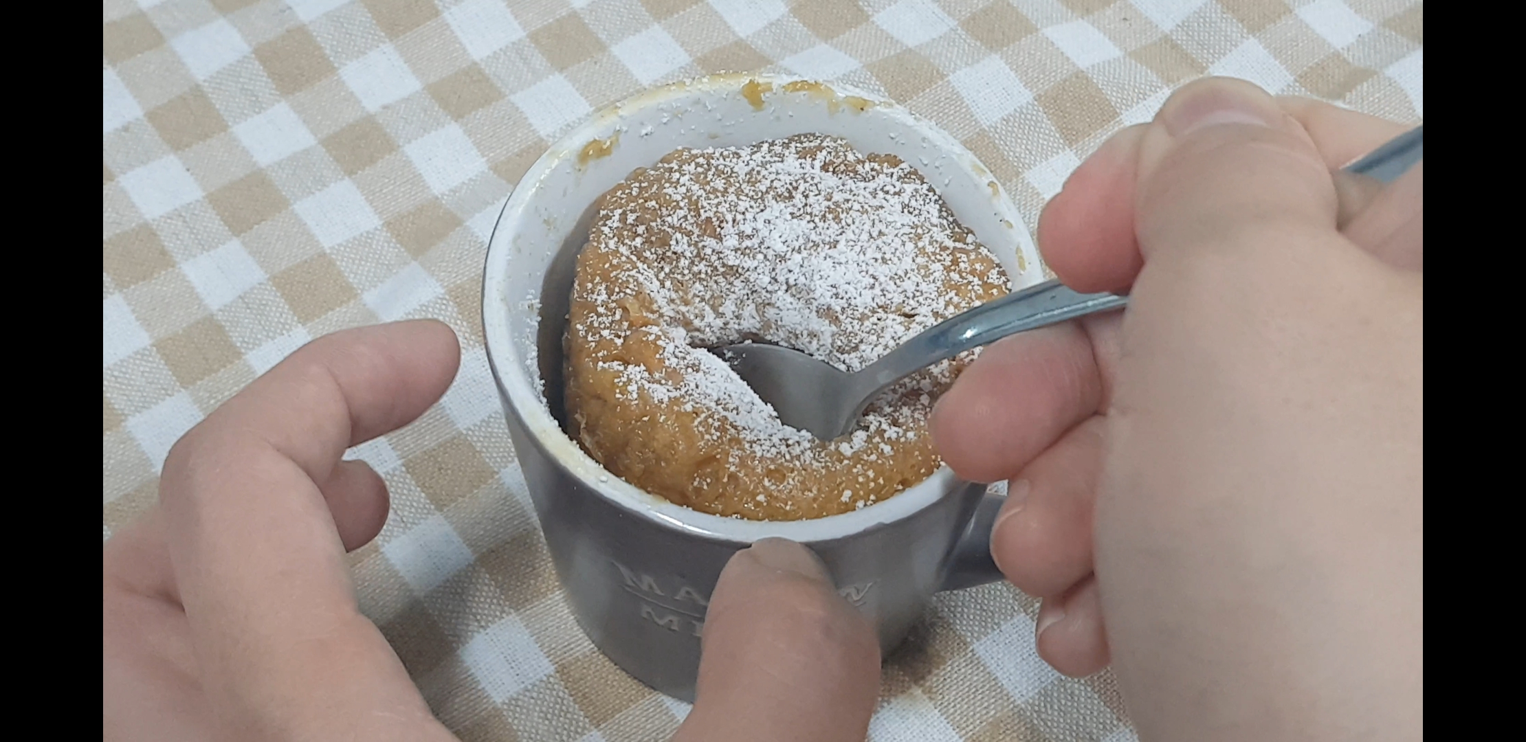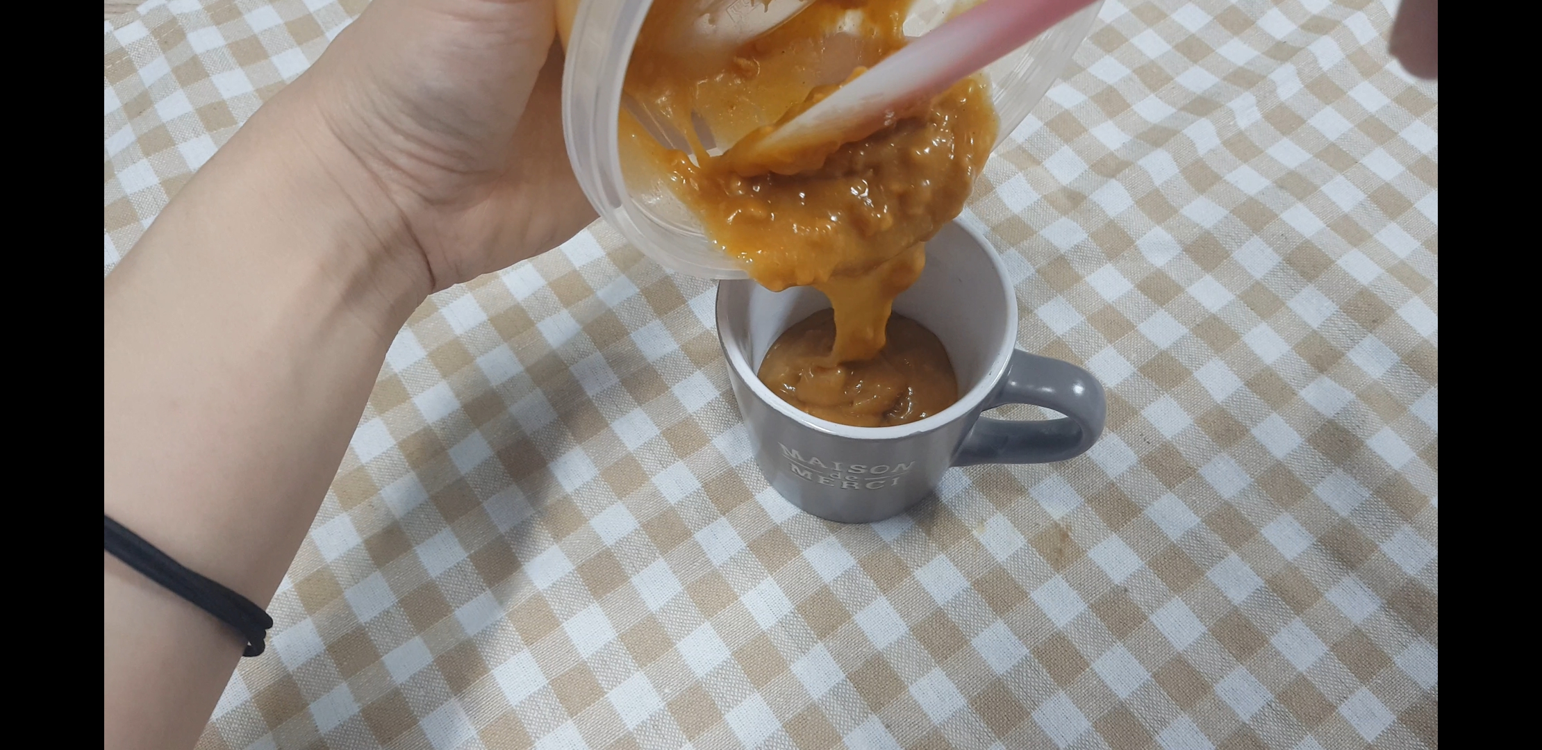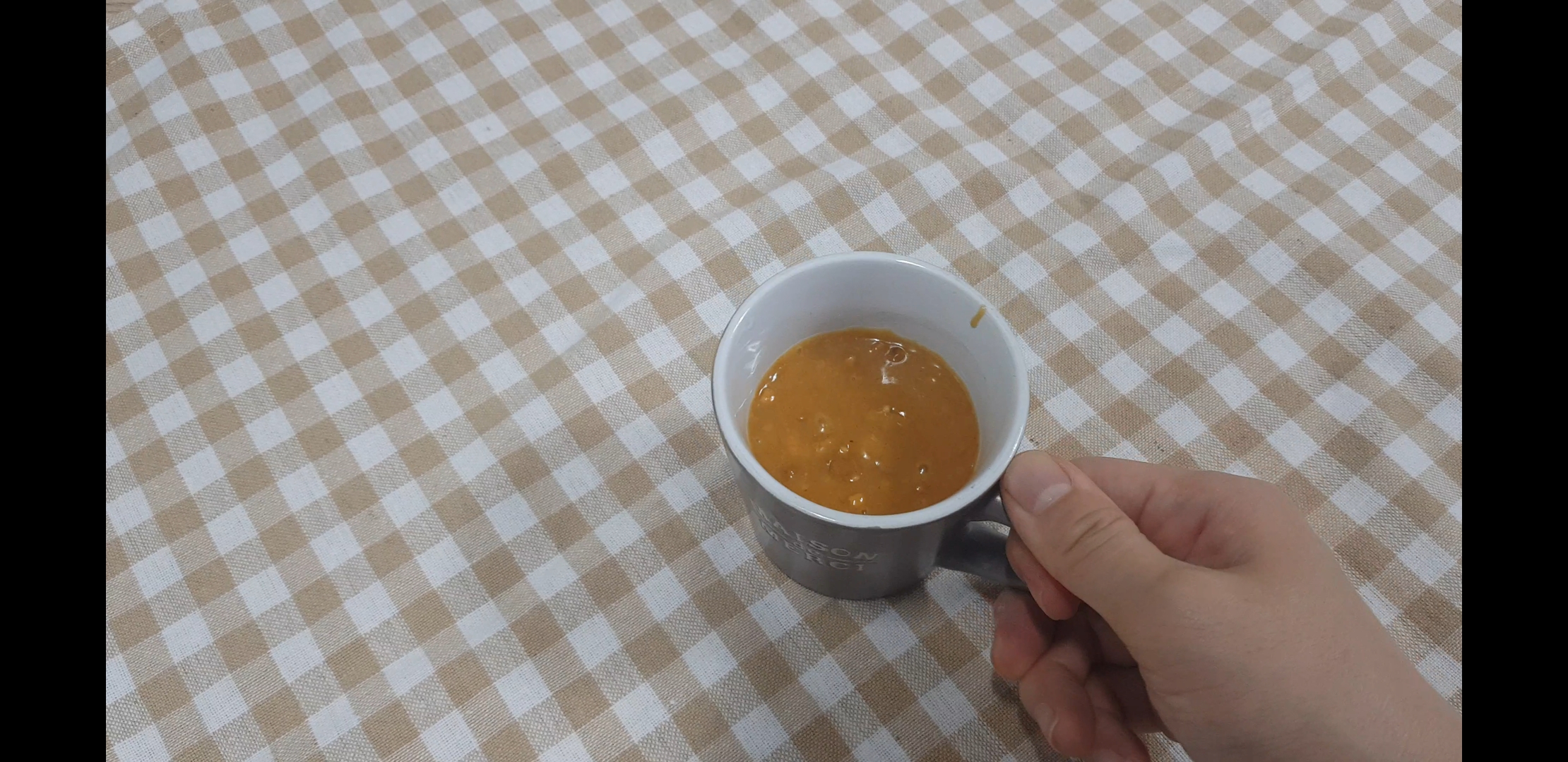 전자렌지 사용 가능한 컵에다가 삭삭 긁어서 넣어줍니다. 나는 머그컵 밖에 없어서 저걸로 썼는데 살짝 낮으면서 넓은 컵이면 모양도 예쁨. 하다앳홈님 영상에 나온 잔같은 경우는 낮아서 케이크가 살짝 부풀어 올라와있어서 더 보기 예뻤는데 나만없어 그런컵...
