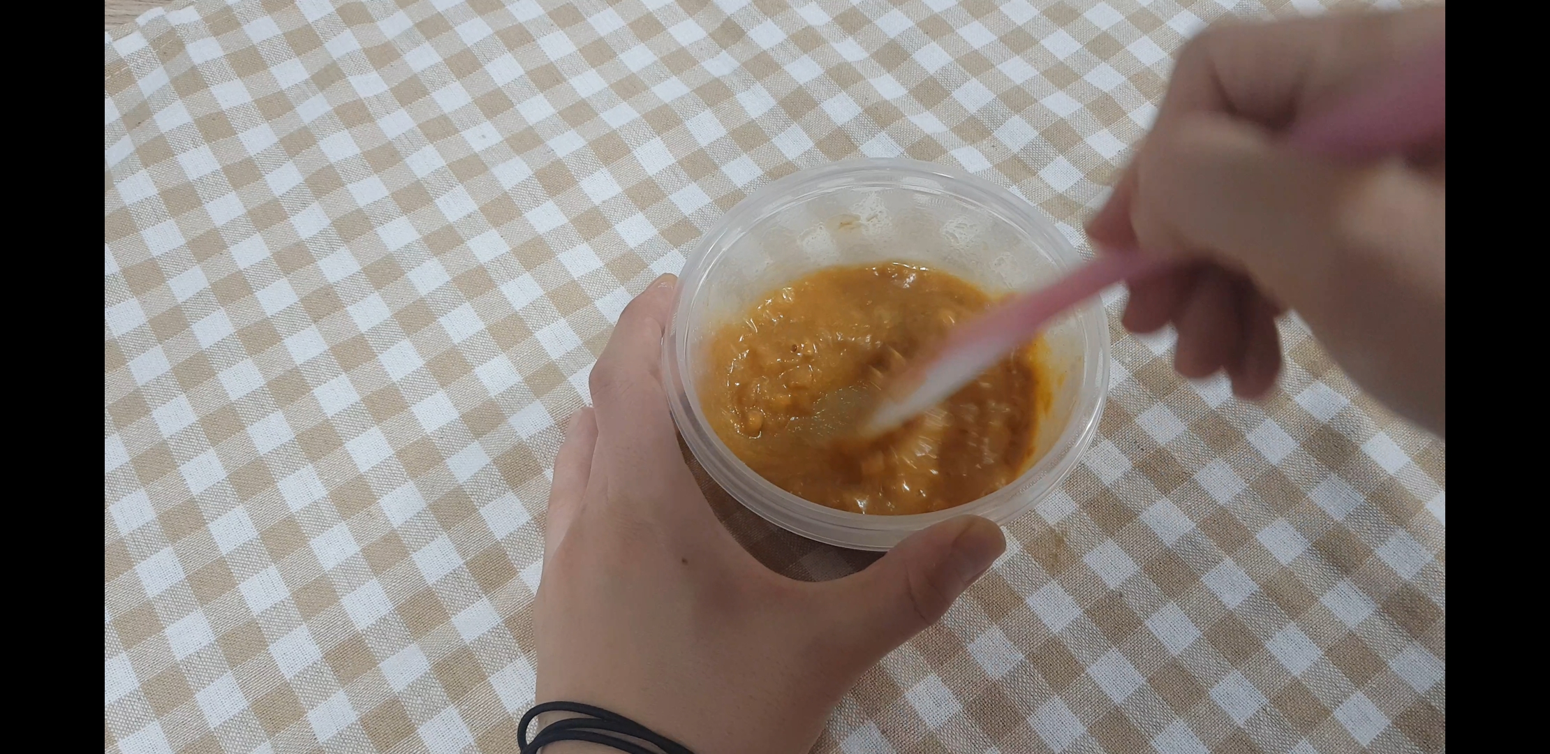 이제 얘들을 살살살 달래가며 뭉쳐있는 버터들을 주걱으로 삐대?면서 ㅋㅋㅋ 하나로 합체시켜 주는작업. 이 작업만 빨리되도 3분완성임 솔직히 ㅋㅋㅋ