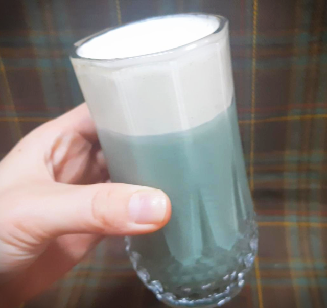 우유를 넣어준다.색깔보소.찌이이인ㅋㅋ(아..집의 특성상 사진이 예쁘게 안나오는데 실물은 훠어얼씬 예쁜 마블링이 나왔는데..)