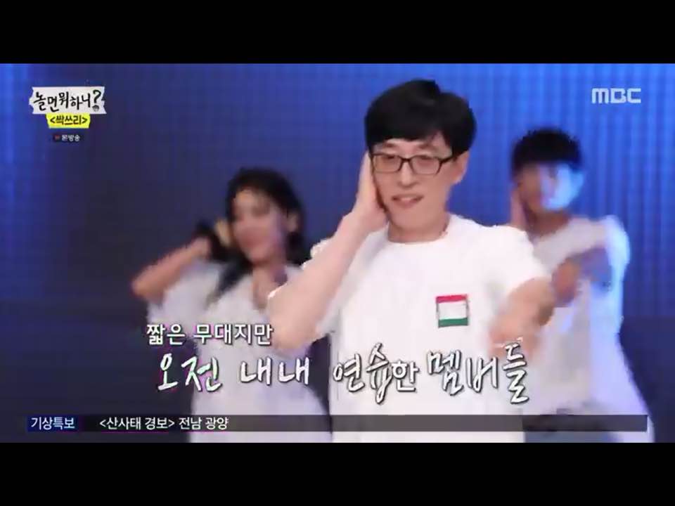 이날의 바쁜 스케줄 중 다음 스케줄은 수발놈이 깜짝 MC로 대기하고 있는 주간아이돌 타임으로 2배속 댄스를 제안했고 2배속은 무슨 재미로 3배속 100배속은 하겠다던 그들은 막상 도입부에서 멘붕이 왔고..ㅋㅋ 무난하게 2배속으로 마무으리.