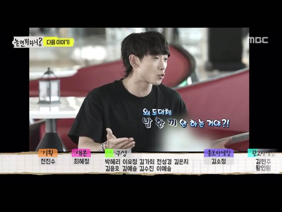 엠카 대기실에서 두번째 이자 마지막으로 남다른 클라스의 호화로운 식사를 하던중 앨범이 나왔다고 인사하러 들어온... 누구시죠..? 한참 생각했는데 대화 도중에 들어보니 소유인듯...ㅋㅋ 소유인지 한번에 알아보신분?;; 그리고 유듀래곤의 꾸준한 사랑을 받고있는 틴탑과 에릭남이 다녀감.ㅋㅋㅋㅋ