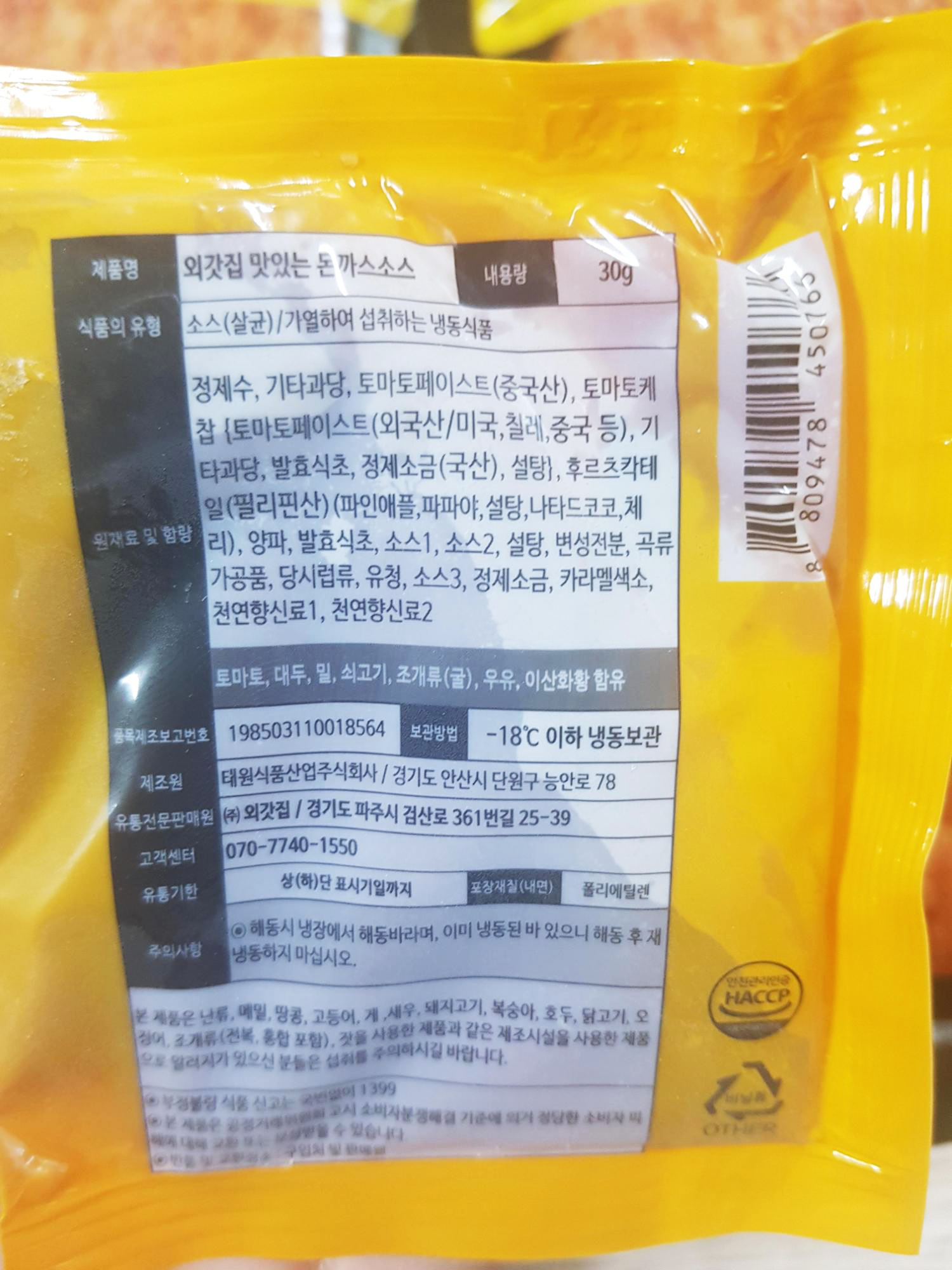 소스 뒷면 정보입니다. ㅋㅋ 여전히 칼로리 표시는 보이지 않아서 아쉽당..ㅋㅋㅋㅋ 아무의미없지만 ㅋㅋ본다고 달라지는건 없어..
