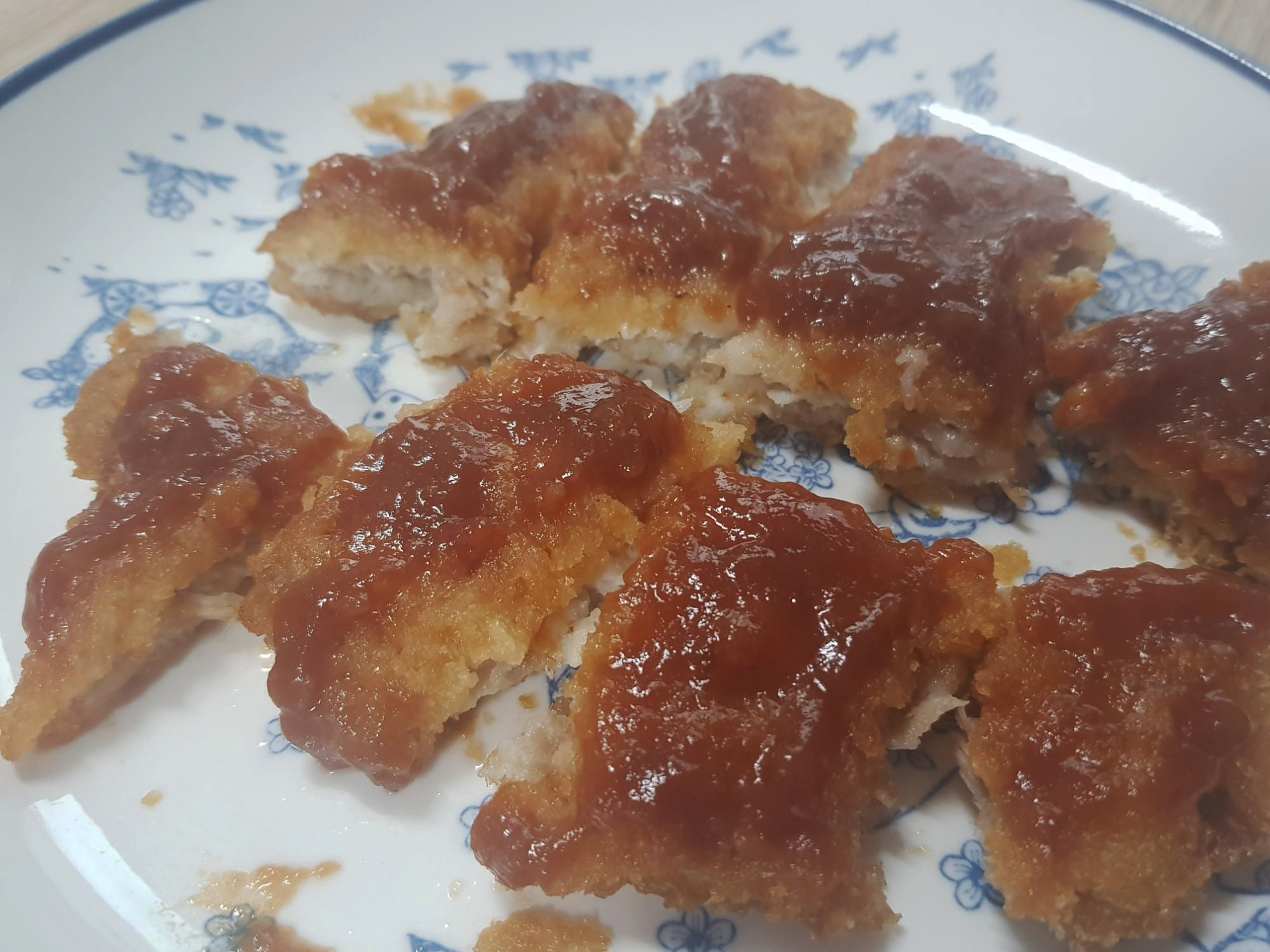 예쁘게 플레이팅 하고 싶었지만 디저트 만들때와는 180도 다른 대충모드..ㅋㅋㅋ 오. 나름 집에서 막 사먹는 일반 돈까스 보다는 고기가 도톰하고 통통하니 괜찮았고 맛도 부들부들 좋았는데 전자렌지 조리라서 그런지 돈까스의 바삭한 식감보다는 부들부들한 식감이라서