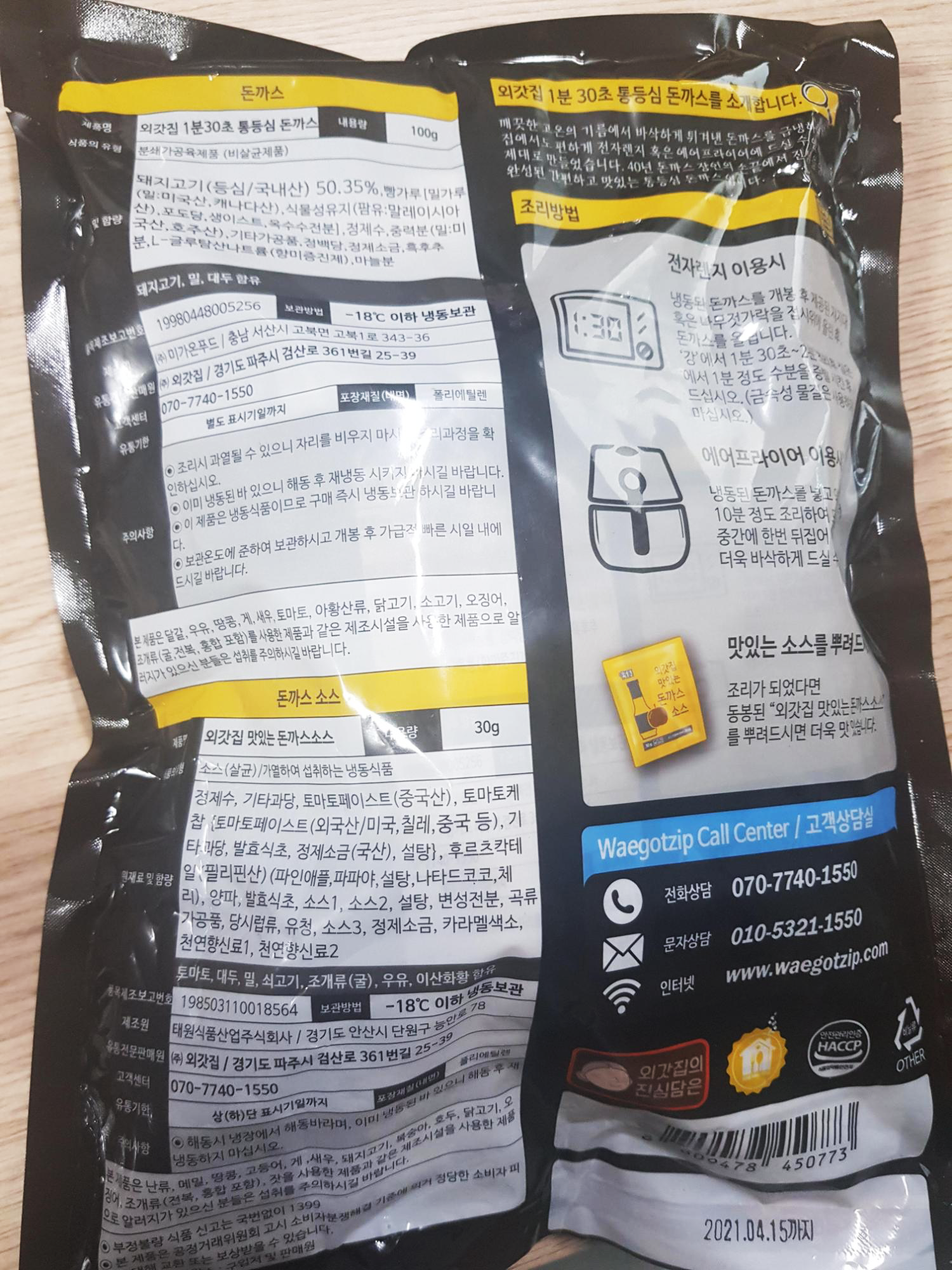 바삭한 식감을 좋아하는 사람들은 에어프라이기를 이용하면 바삭한 서타일의 외갓집 1분 30초 돈까스를 먹을수 있음.