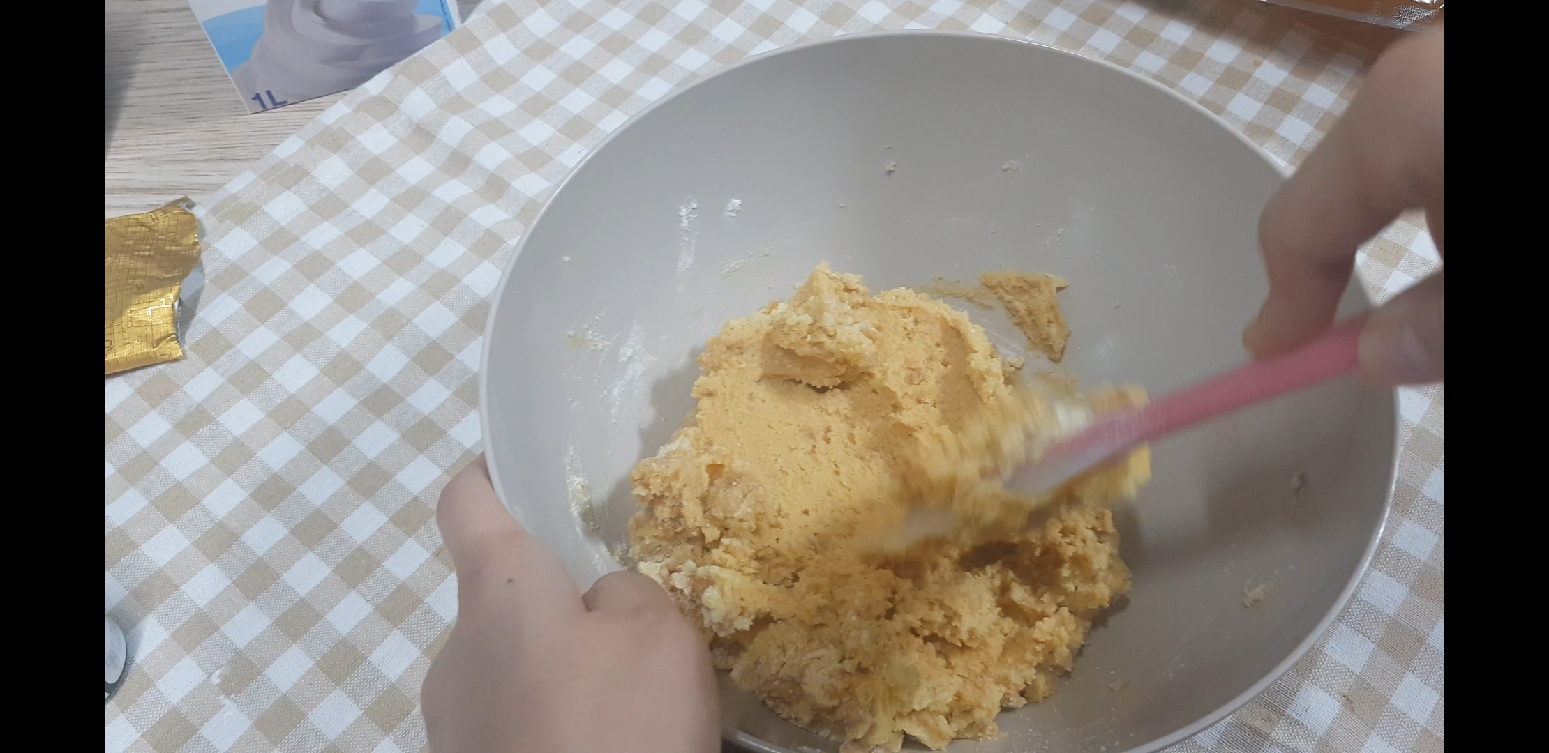 가루와 하나가 되도록 꾹꾹 눌러가며 섞고 뒤집고 하다보면