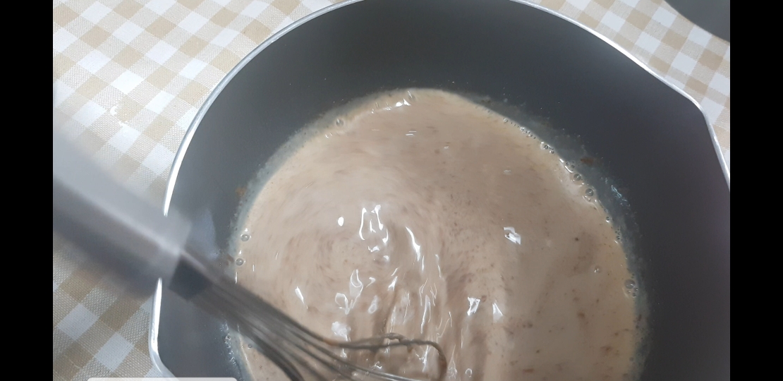 불을끄고 무설탕 초콜릿 80g을 넣고 2-3분 정도 기다렸다가 바닐라 익스트랙 1tsp를 넣고 (난 무설탕 초콜렛 없어서 일반 초콜릿 사용)