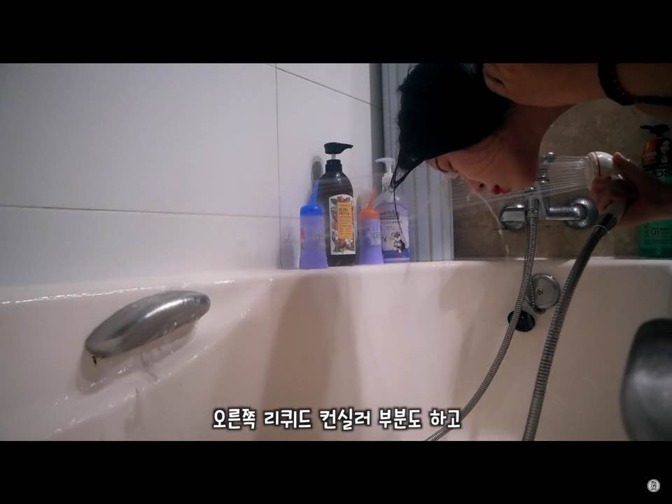 세면대 위에서 샤워기를 얼굴쪽으로 한 다음 얼굴샤워 시도