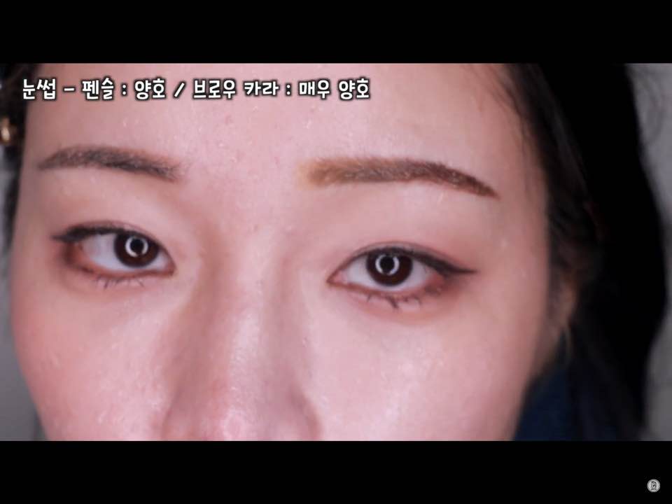 섀도우와 라인까지 그려주고 립까지도 완성을 해준 모습 왼쪽은 리퀴드 컨실러를 사용 오른쪽은 크림타입 컨실러를 사용하고 지속력을 테스트
