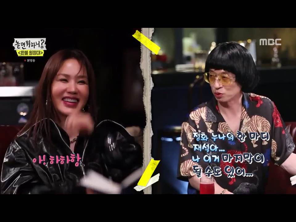 결혼했냐고 질문한 이효리에게 결혼아직 안했다고 상황극 대답하는 지미유와 옛싹쓰리때의 추억을 회상하며.. 다시 상황극 ㅋㅋㅋㅋㅋㅋ