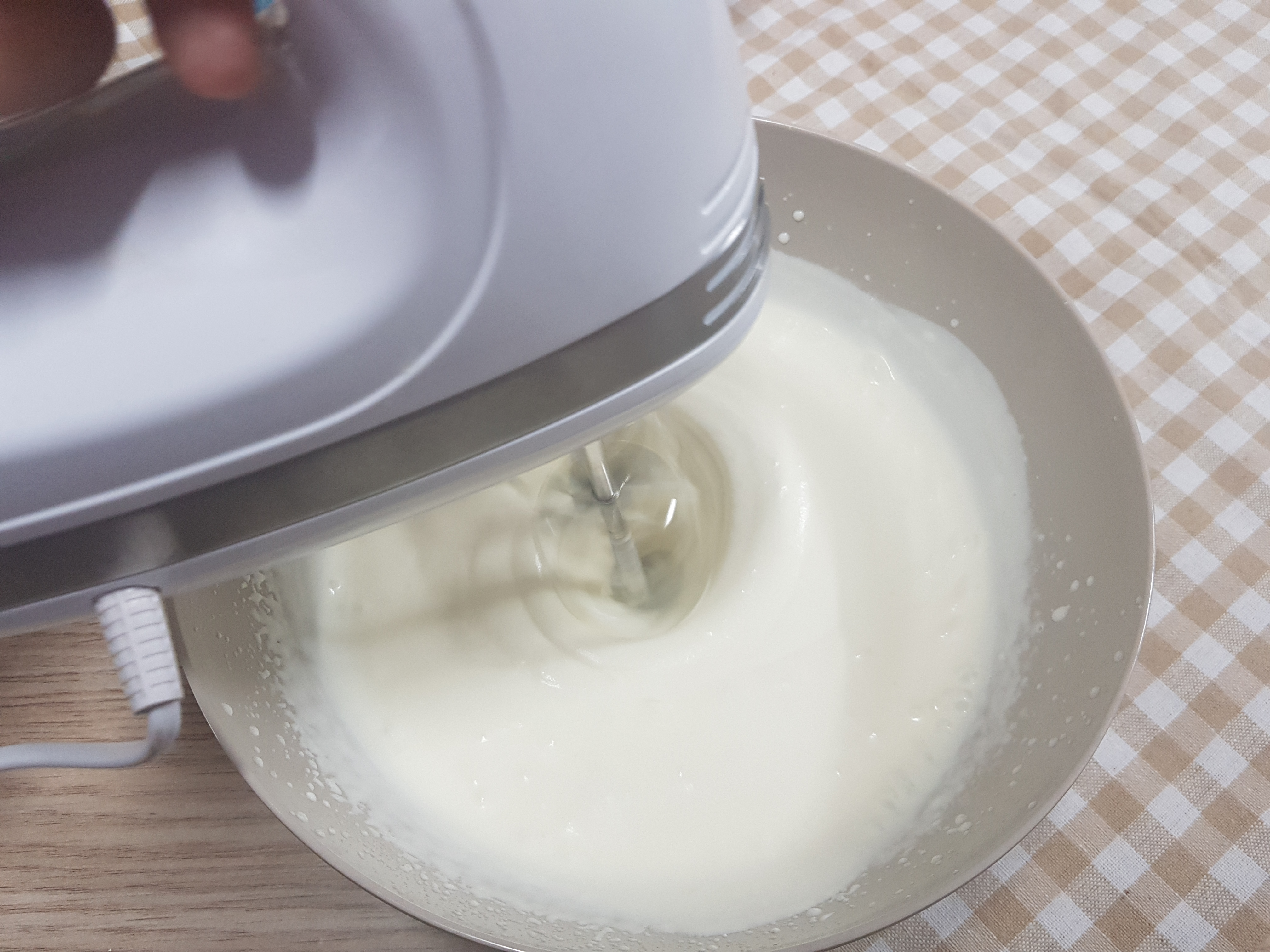 생크림 300ml에 설탕대체 감미료 (스테비아) 20g 넣고 공기주입해서 휘핑해준다. 단단하게 뿔이 생길때 까지 말고 보다는 주름이 보이는 정도? 까지 적당하게 휘핑해 주고