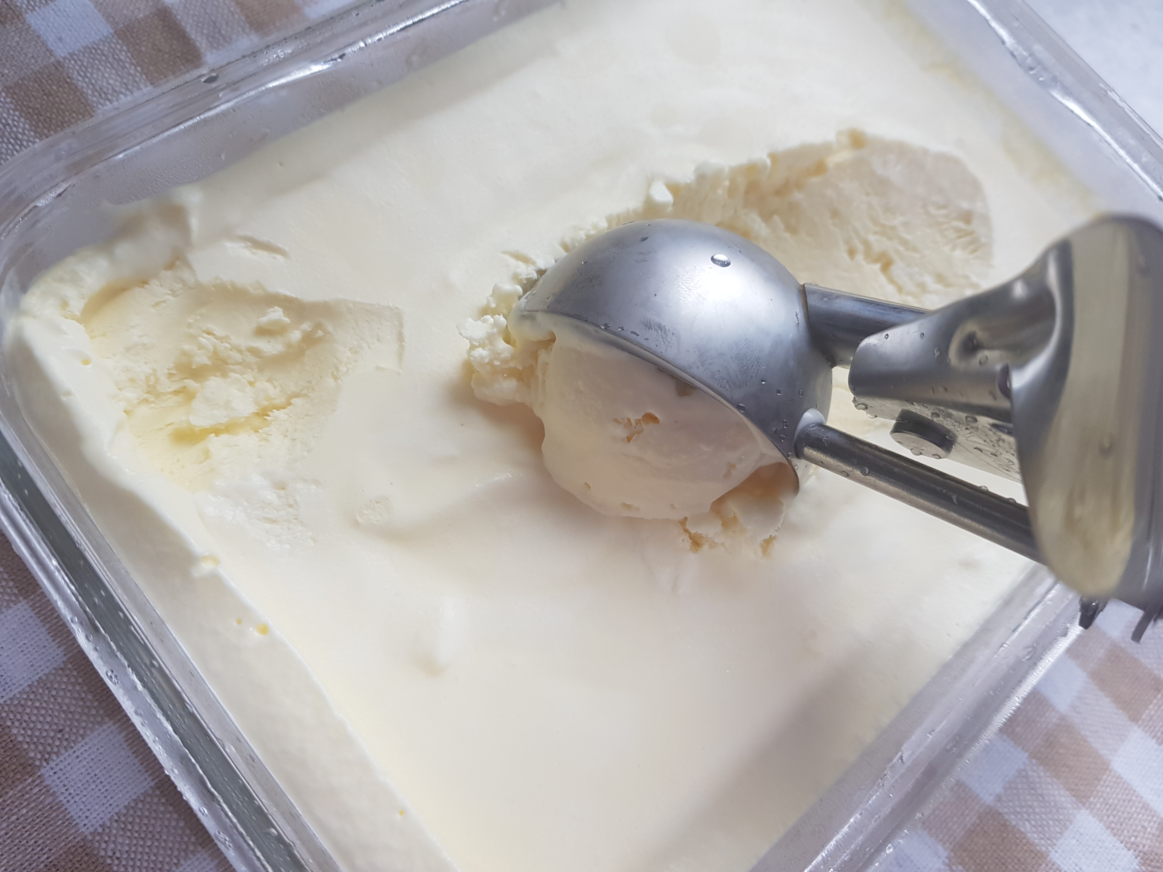 다음날 아침..ㅋㅋㅋ 일어나자 마자 아이스크림을 실온에 살짝 꺼내고 5분 정도 기다림.. 냉장고 성능이 좋아서 그런건지 너무 꽝꽝 얼어서 잠깐 동안 놔두고 스쿱으로 떠본다..ㅋㅋㅋㅋ 막. 드라마틱하게 아이스크림 광고처럼 떠지지는 않지만..ㅋㅋㅋ 괜찮아..ㅋㅋ