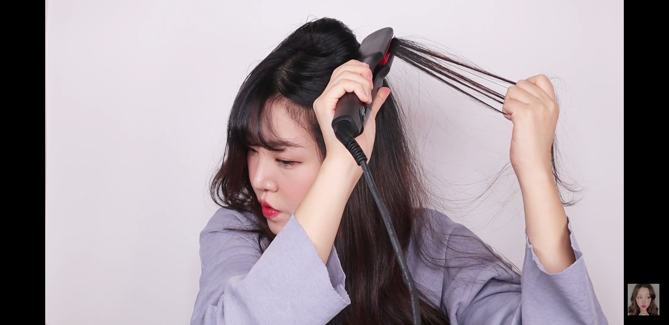 유튜버 에일라님은 같은 제품 나이아가라 고데기를 쓰지만 자신만의 살짝 다른 방식으로 오히려 두피에 바짝 붙이지 않고 살짝 띄워서 찝어주고 그 다음 섹션은 앞전에 찝어줬던 같은 높이 말고 바로 아랫부분 그다음은 그 아랫쪽 이런식으로 골고루 아래로 내려가며 찝어주는 방식.